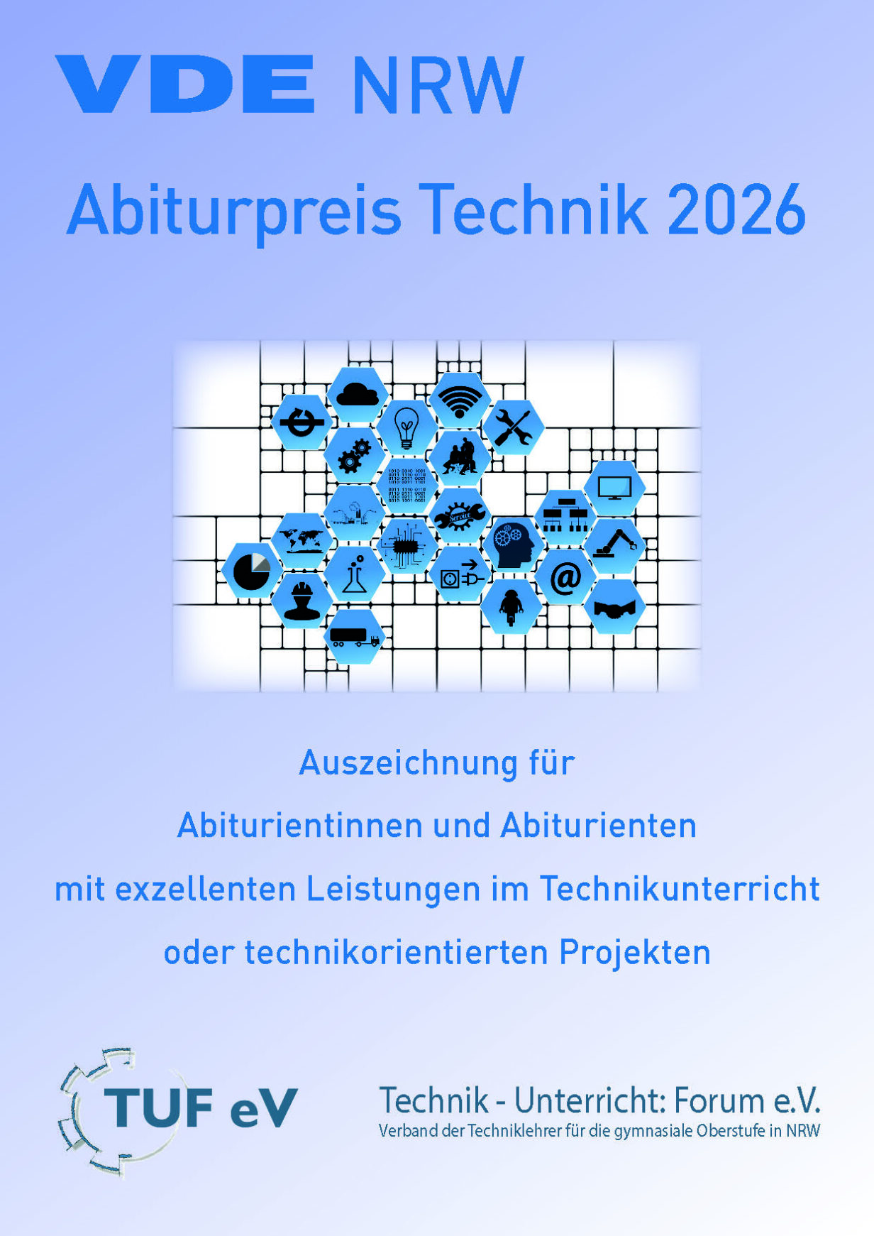 Bereits seit dem Abiturjahrgang 2022 vergeben der VDE Rhein-Ruhr ( Verband der Elektrotechnik Elektronik Informationstechnik Rhein-Ruhr e.V.) mit dem TUF (Technik-Unterricht: Forum e.V.) in Kooperation den VDE-TUF-Abiturpreis. Angesprochen sind alle Schulen mit Technikunterricht in der gymnasialen Oberstufe in NRW und weitere Schulen ohne Technikunterricht aus NRW.